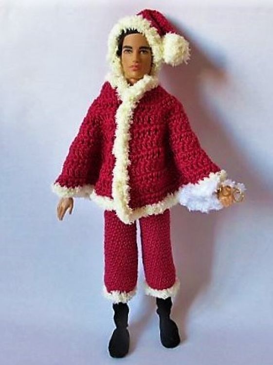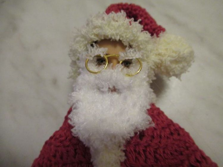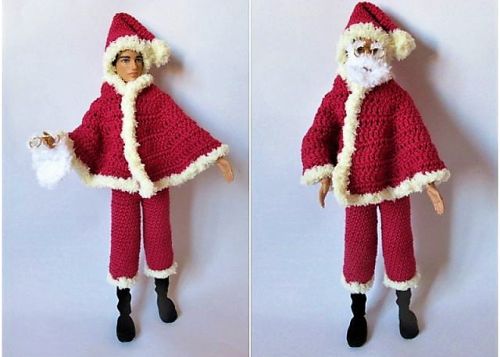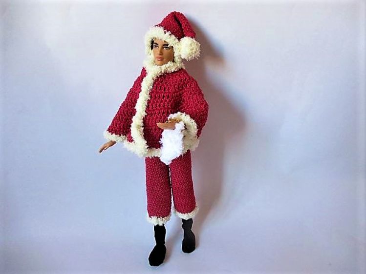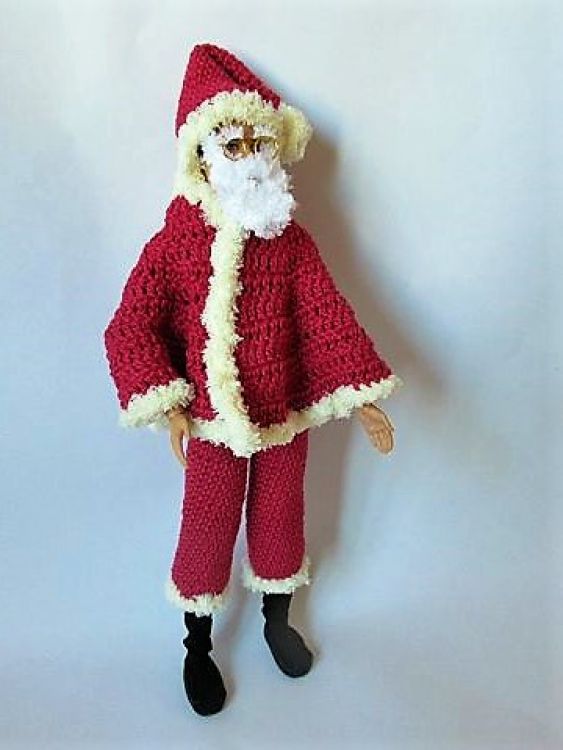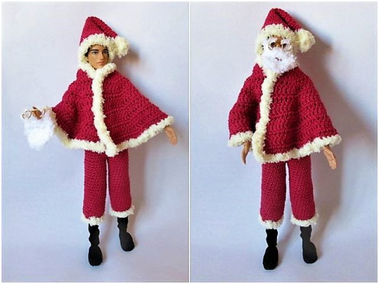 Mit diesem Kostüm können sich Ankleidepuppen in einen waschechten Weihnachtsmann mit Brille, Zipfelmütze und Bart verwandeln. In der Anleitung erfährst du außerdem, wie man die Stiefel selbst herstellen kann.