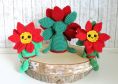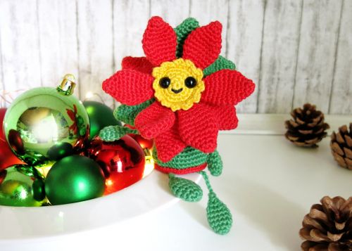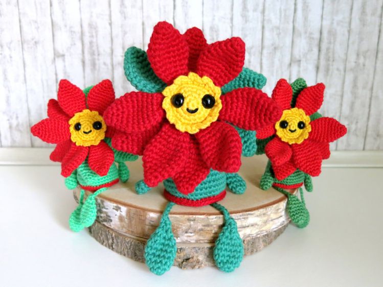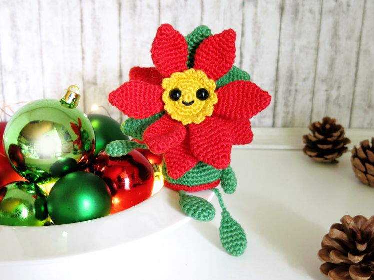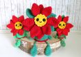 Mit 2.0 mm Nadel und Sport Garn wie z.B. Catona oder Catania Originals wird die Blume 10 x 10 cm groß (ohne hängende Beine).