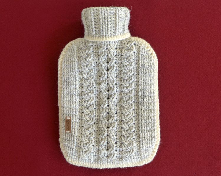 Die Tage werden kürzer, die Abende kühler. Da kommt eine Wärmflasche mit neuem gehäkelten Bezug doch gerade recht. Und welches Muster passt besser zum Herbst und Winter als das Zopfmuster?