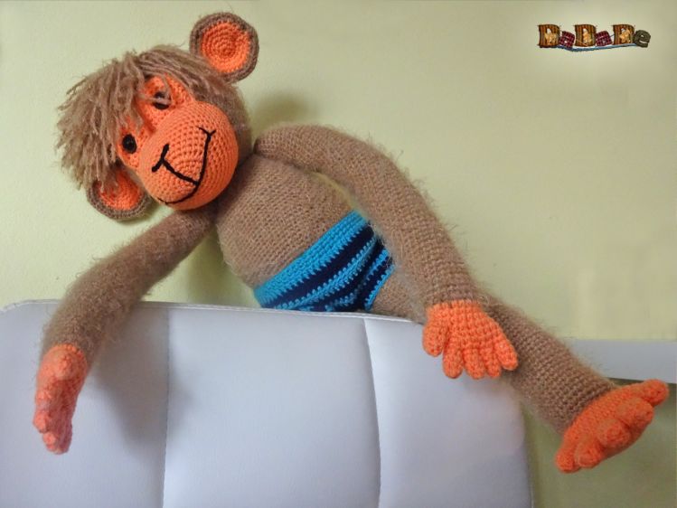 Mit Nadelstärke 3 gehäkelt, wird der Affe ungefähr; 42cm hoch