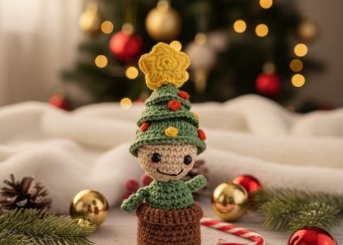 Tiny wurde mit viel Liebe gehäkelt und sitzt in seinem kleinen Topf bereit, um Weihnachtszauber zu verbreiten. Mit seinem fröhlichen Lächeln sucht Tiny ein gemütliches Zuhause, wo es Teil Ihrer festlichen Traditionen werden darf. Schenken Sie diesem Unikat ein Plätzchen und erleben Sie eine wunderbare Weihnachtszeit!