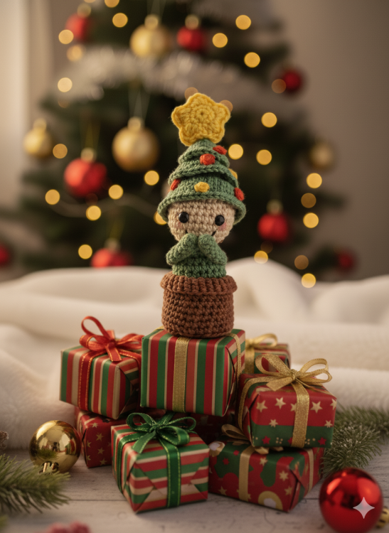 Tiny wurde mit viel Liebe gehäkelt und sitzt in seinem kleinen Topf bereit, um Weihnachtszauber zu verbreiten. Mit seinem fröhlichen Lächeln sucht Tiny ein gemütliches Zuhause, wo es Teil Ihrer festlichen Traditionen werden darf. Schenken Sie diesem Unikat ein Plätzchen und erleben Sie eine wunderbare Weihnachtszeit!