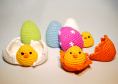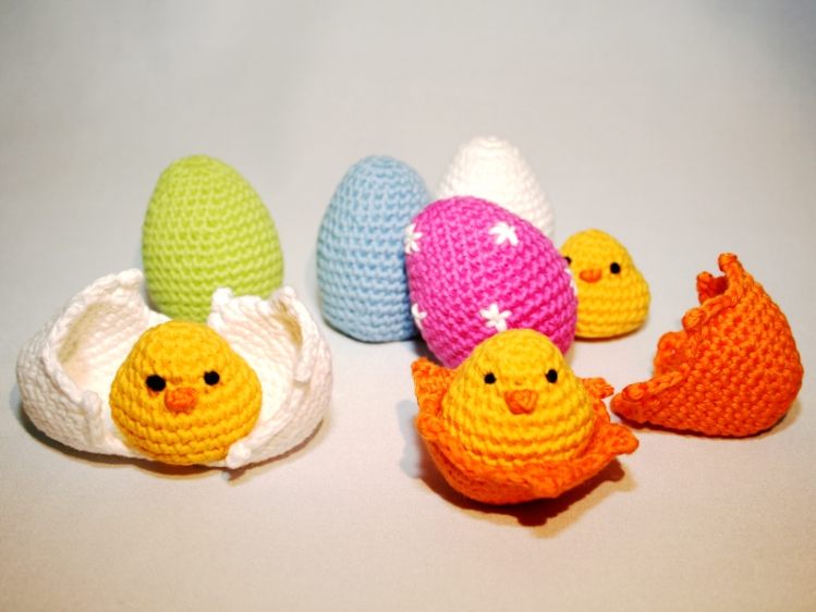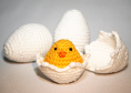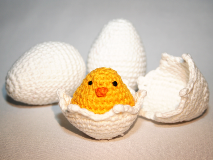 Mit dieser Anleitung kannst du ganze Eier, Ei-Hälften mit gezacktem Rand und Küken häkeln.