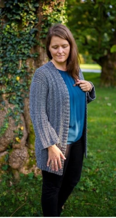With this pattern you can crochet the beautiful cardigan “Dorea”! It is easily adaptable to any size and can also be worked shorter as a jacket or without sleeves as a vest. You can work the sleeves straight, without decreases, or with decreases so that they fit a little tighter.