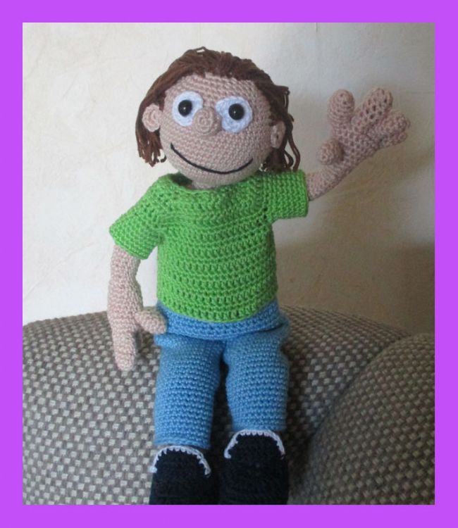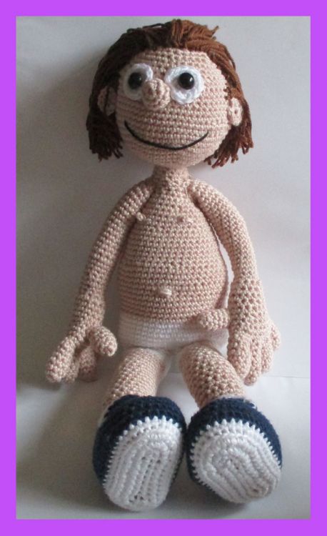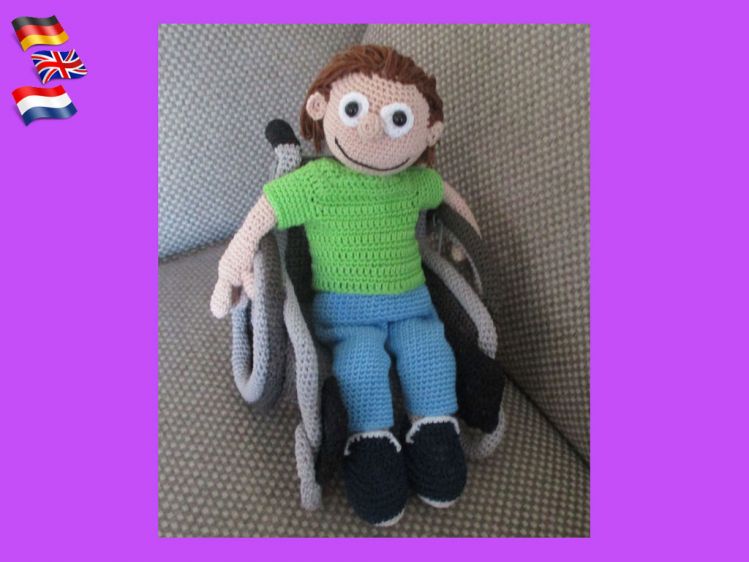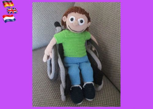 * De pop wordt (bij gebruik van haaknaald 2) 25 cm groot (zittend in rolstoel)