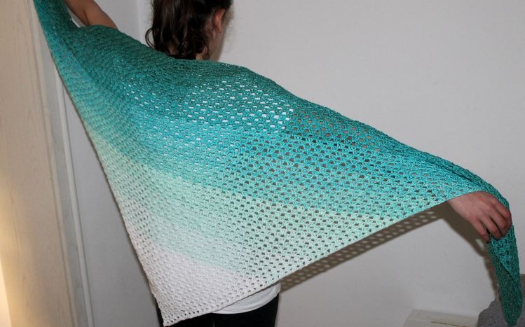 The crochet scarf will be about 2,3 m/ 90 inches wide and 0,85 m/35 inches high.
