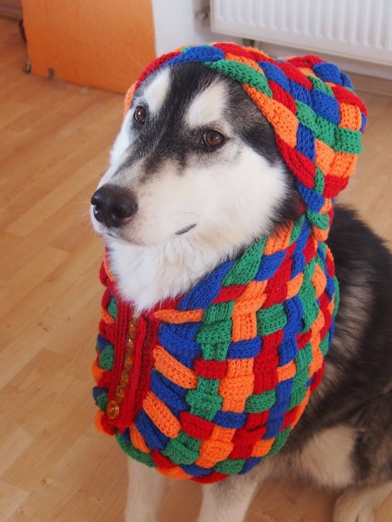 Die gebogene Form schmiegt sich perfekt um die Schulter - da rutscht einfach nichts. Mein Model (es stand leider niemand anders zur Verfügung und der Hund wurde für seine Dienste fürstlich entlohnt) zeigt die Variante, die auch Regen und Schnee perfekt abhält.