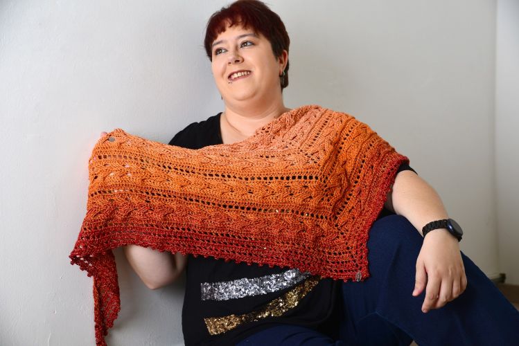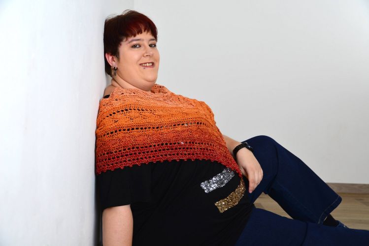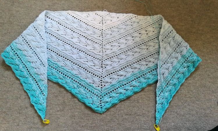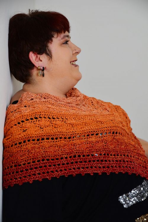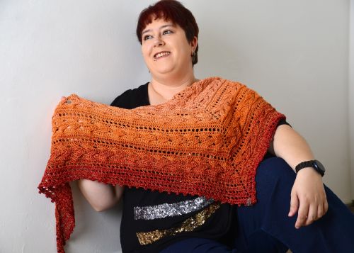 Here you get the instructions for a flat triangular scarf with a nifty pattern.