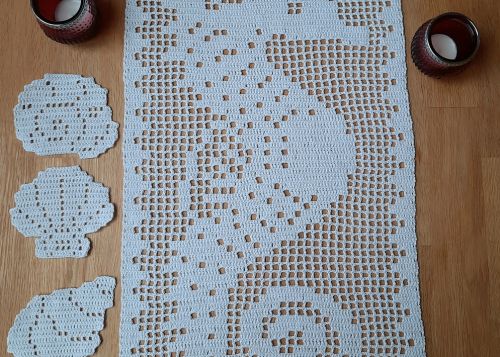 Häkelanleitung für das Deckchen Seepferdchen und 3 Untersetzern Muschel