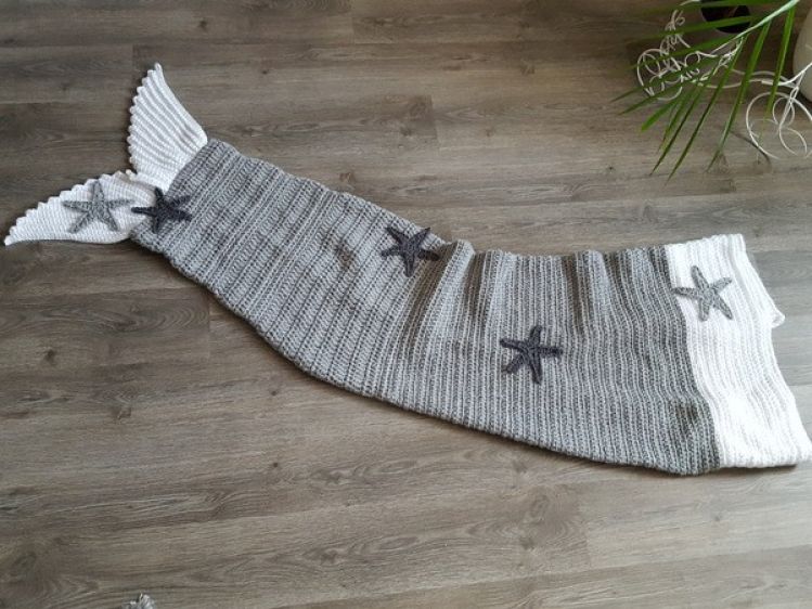 Kann auch weniger sein :-) Die kuschelige Decke hat eine fertige Gesamtlänge von 1,70m Die Flosse beträgt 25 cm
