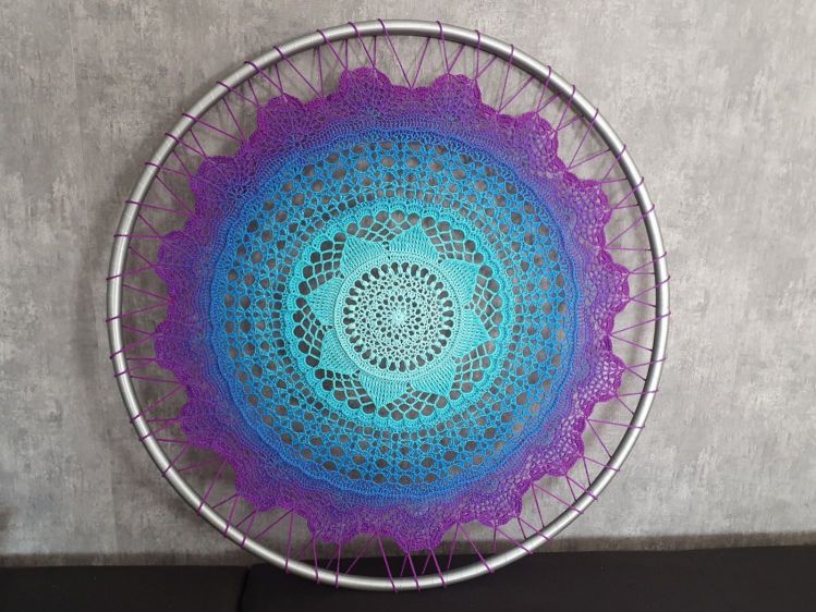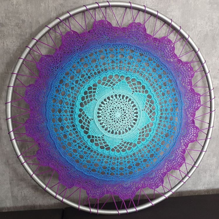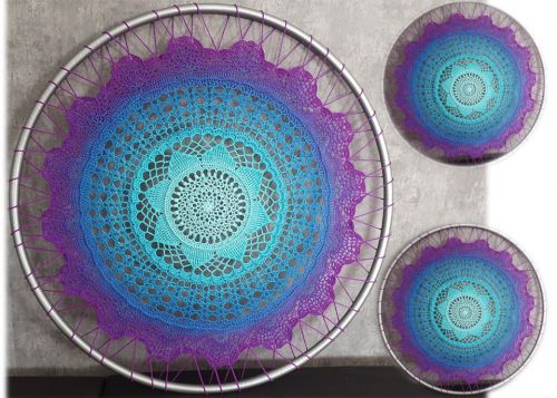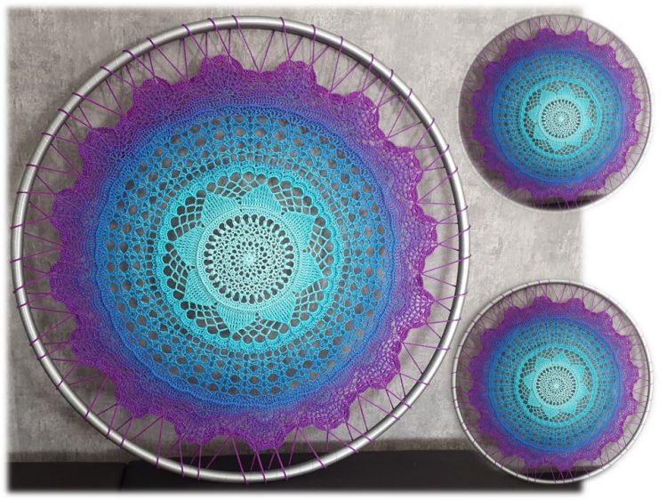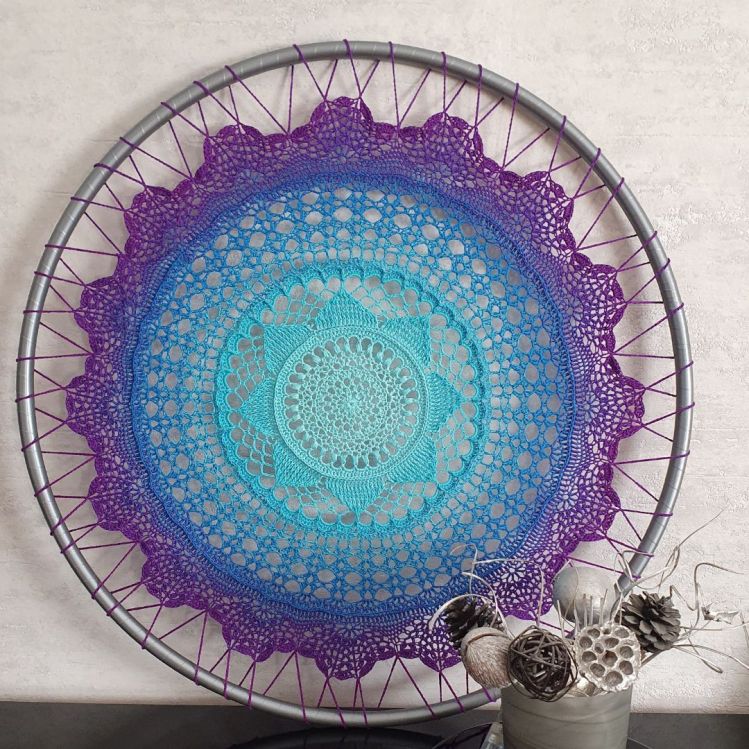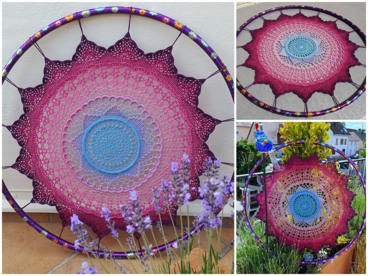 Mandala Fleur kann als Traumfänger, Tischdecke oder Fensterdeko gehäkelt werden. Die Anleitung besteht aus 4 Teilen und kann theoretisch nach jedem Teil beendet werden. Somit eignet sich die Anleitung auch ganz besonders für Wollreste.