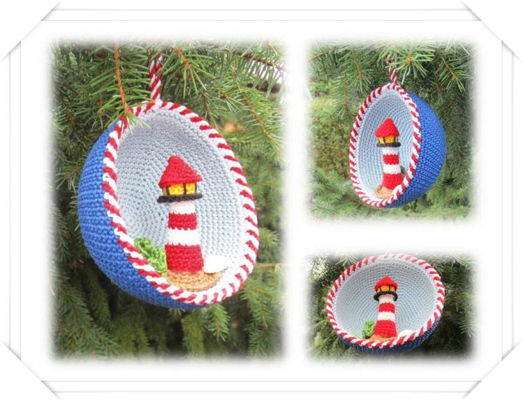 Die Kugel hat einen Ø von 12 cm und der Leuchtturm ist 8 cm hoch.