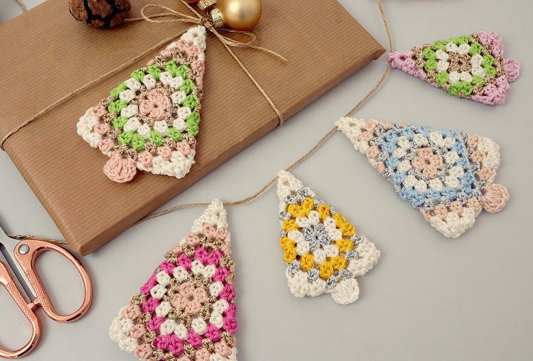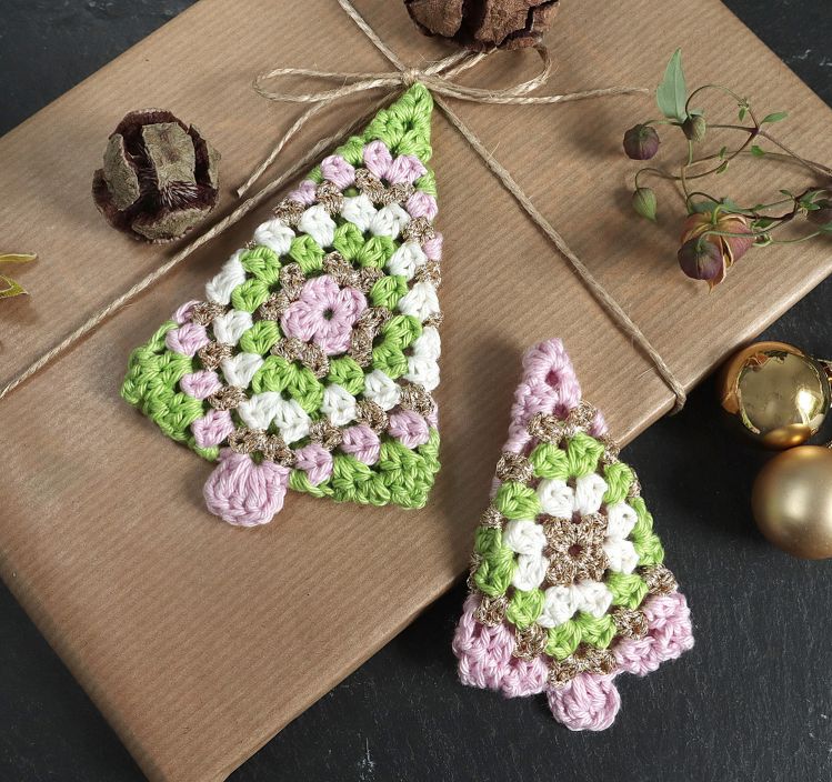 Diese kleinen gehäkelten Weihnachtsbäume sind vielseitig einsetzbar – ob als Ornament am Christbaum, als liebevoller Geschenkanhänger oder als dekorative Girlande.