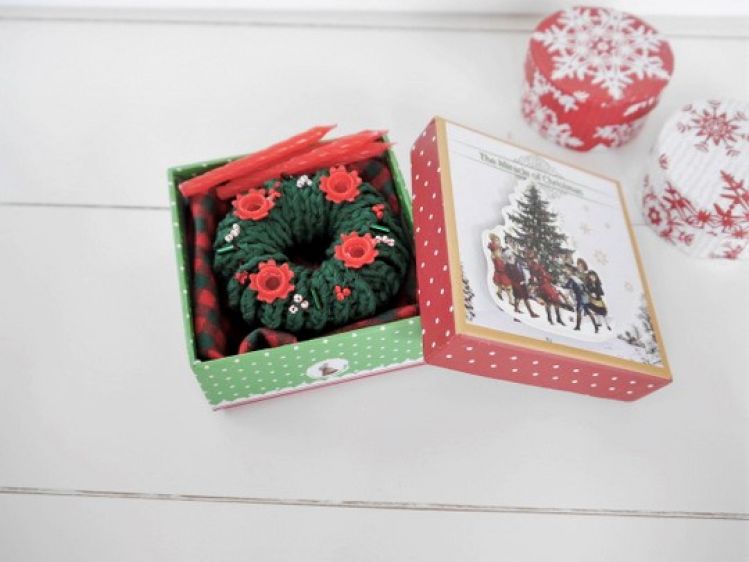 * Geschenkkarton (evtl. 10 x 10 x 4 cm) Bei Verwendung o.g. Materialien, entsteht folgende Größe: Durchmesser vom Kranz = 7 cm