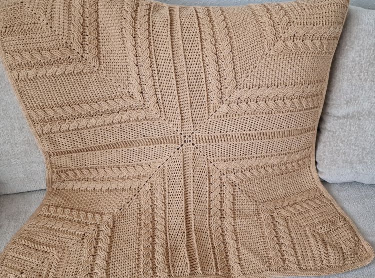 Ein einzelnes Quadrat wird 75x75cm oder 80x80cm, je nach Garnstärke.