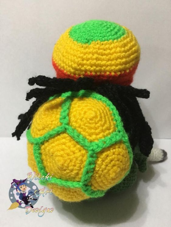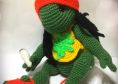 Der fertige Jimmy hat eine Größe (mit gestreckten Beinen) von ca. 29 cm - Größe ist abhängig von der Wolle die verwendet wird und wie fest oder locker gehäkelt wird.