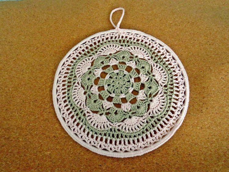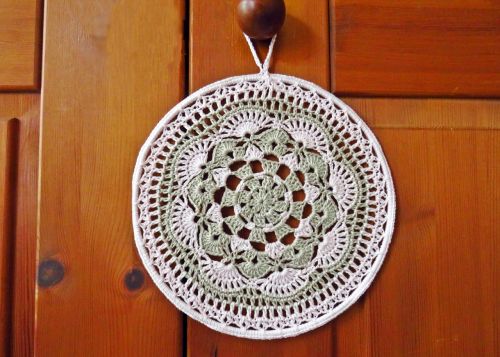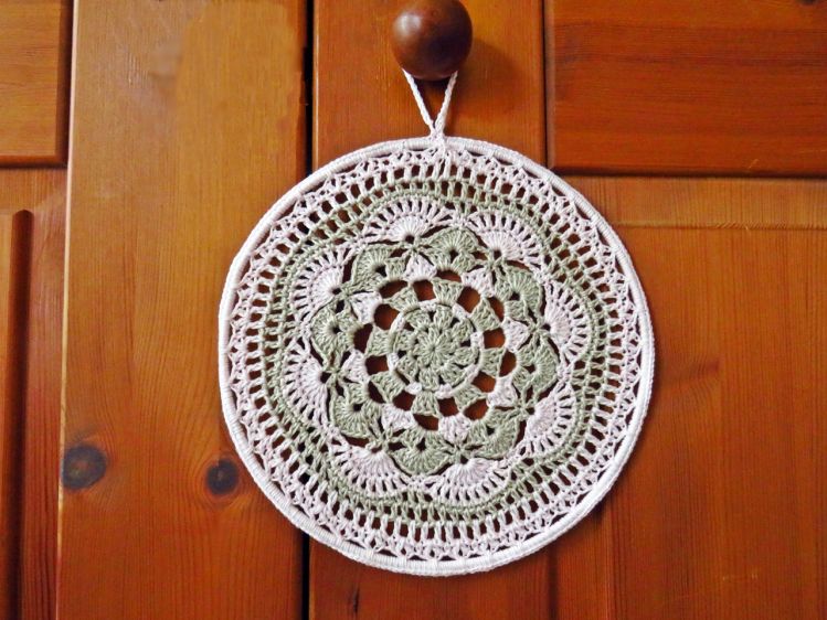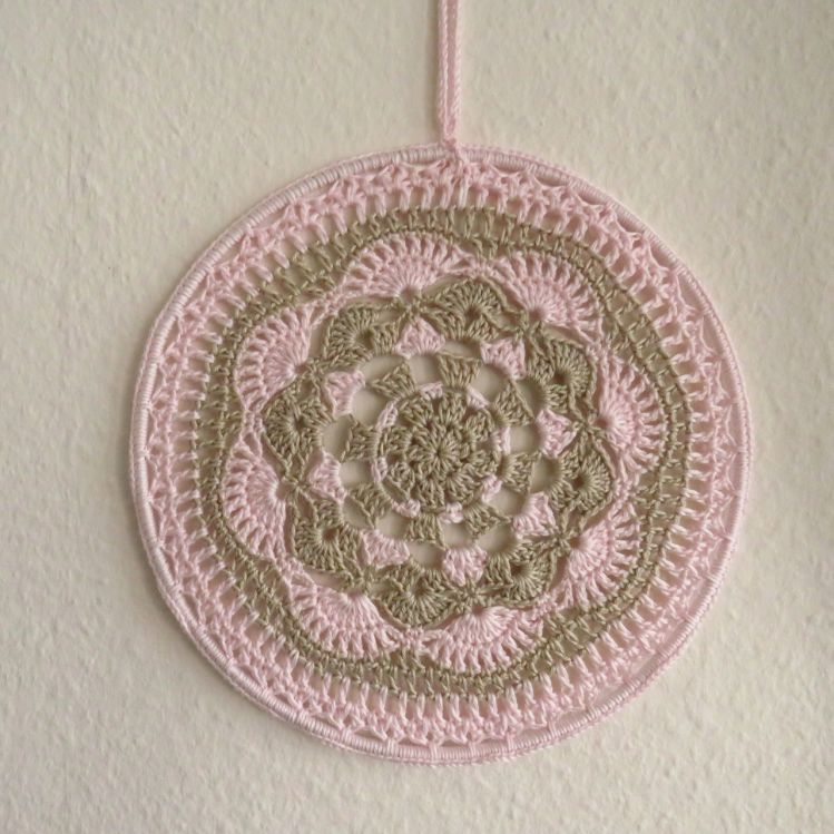 Ein Mandala in wunderbar zarten Farben ist dieses hier. Es heißt Rose & Sand und ist 20 cm im Durchmesser.