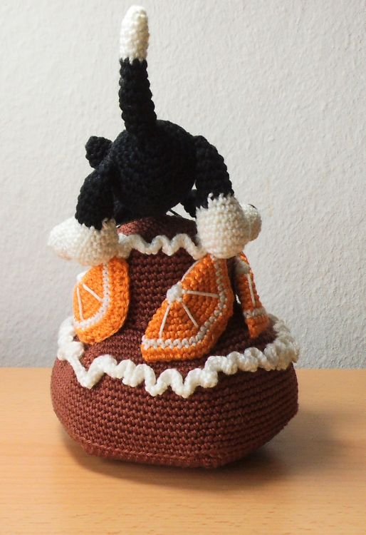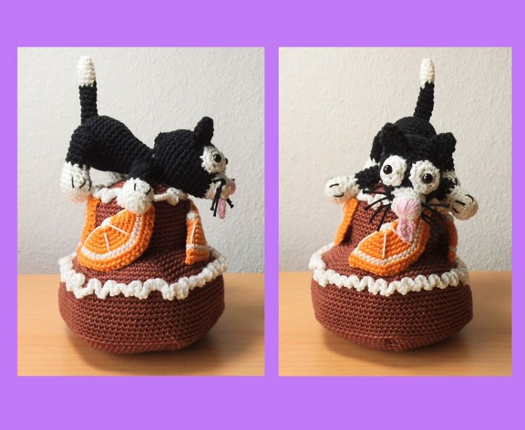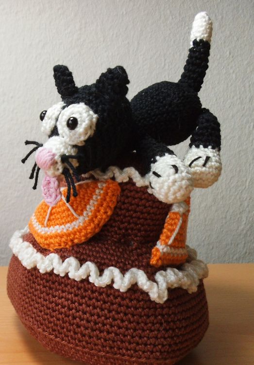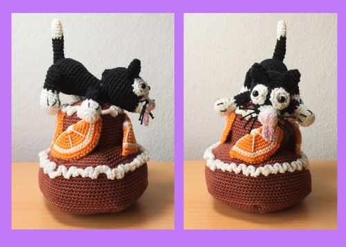 "Alles meins, meins, meins!" ruft die Katze, während ihr die Zunge heraushängt und ihre Augen vor lauter Gier fast herausfallen. Die Orangen-Schokotorte gibt sie jedenfalls nicht wieder her. Einmal entdeckt - alles ganz alleine weggeschleckt ;-)
