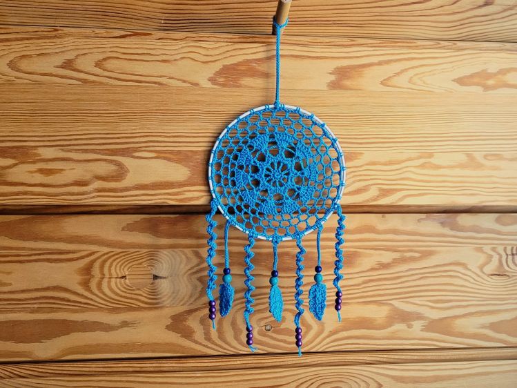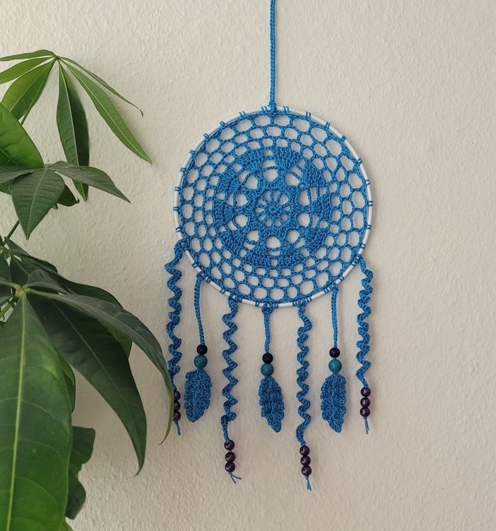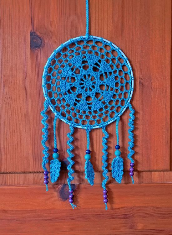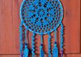 Der Traumfänger Blue Bayou ist einfarbig und sitzt in einem Metallring.