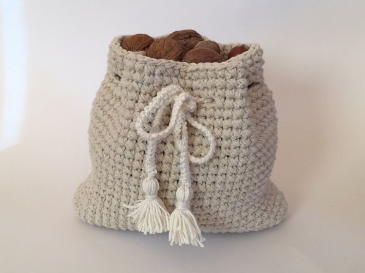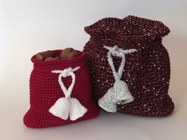 großer Sack: ca. 22 cm breit und 18 cm hoch (mit doppelten Faden gehäkelt) - NS 6,0