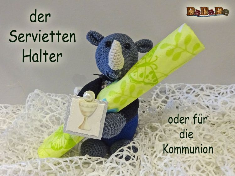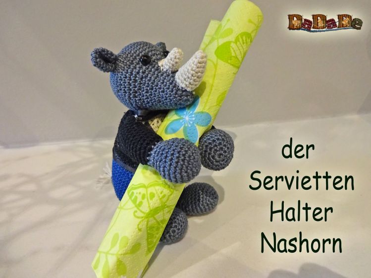 der lustige Serviettenhalter Nashorn - gehäkelt von Dadade