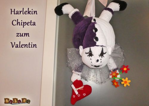 deshalb hat der Harlekin ein Herz dabei, z.B. für einen kleinen Gutschein zu verschenken