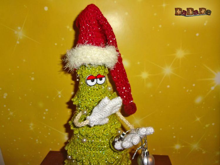 Mit Glitzerwolle der Nadelstärke 3 wird der Tannenbaum ungefähr;