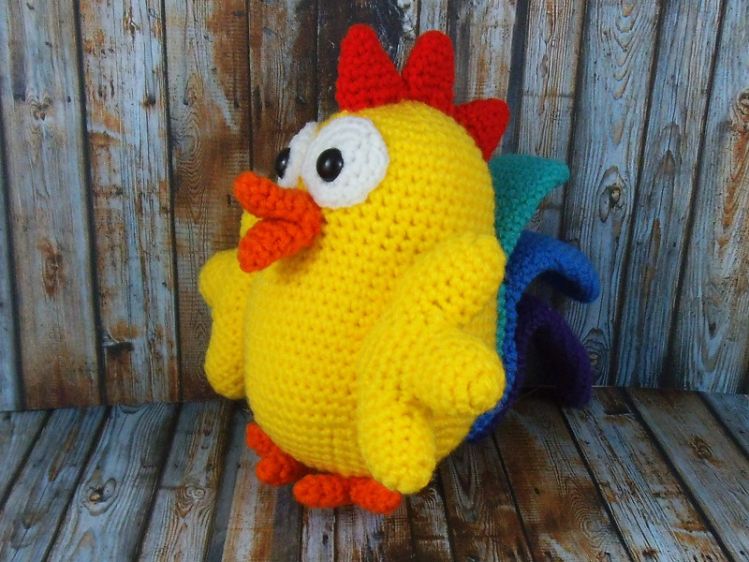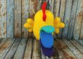 Der verrückte Hahn ist knallbunt, schlägt mit seinen Flügeln um sich und läuft völlig aufgescheucht umher.