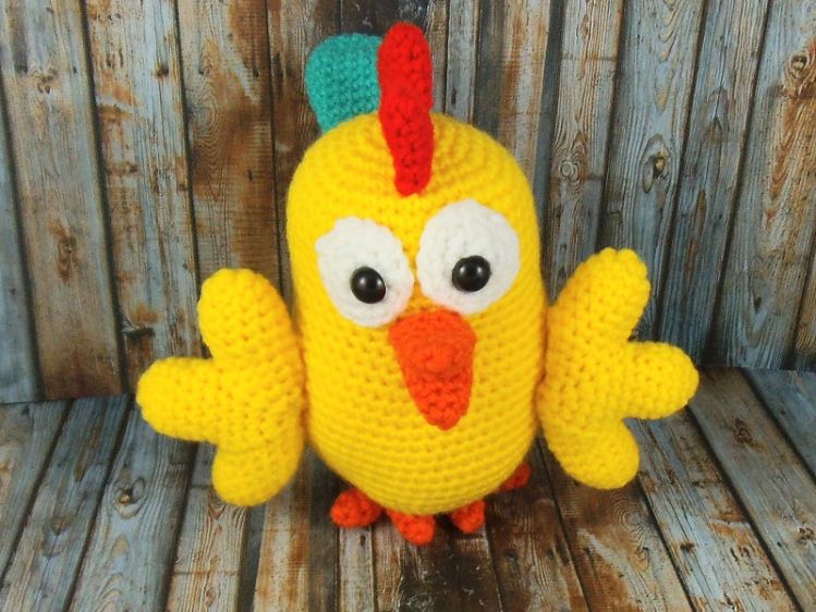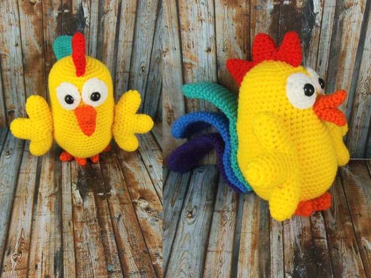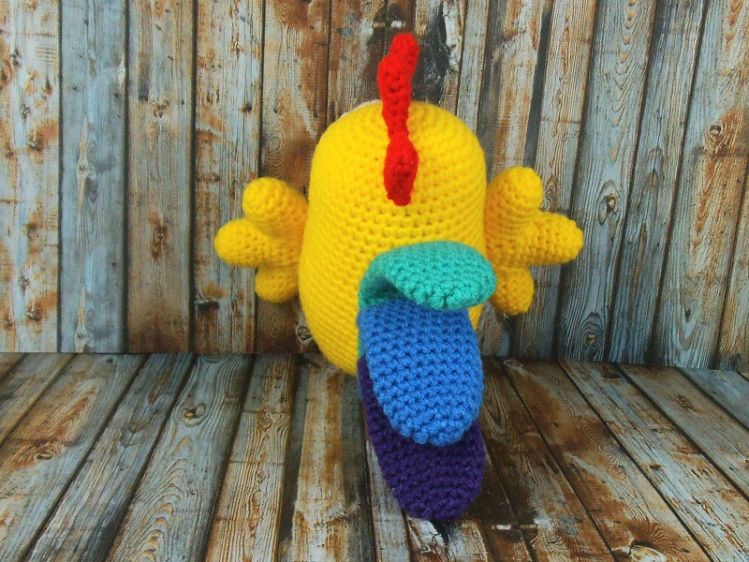 Du benötigst 1x 50g Knäuel bzw. ca. 137 Lauflänge gelbes Garn, Wollreste in rot, orange, weiß, grün, blau und lila, Häkelnadel 3,5, Sicherheitsaugen schwarz 14mm Durchmesser, Füllwatte, Schere, Wollnadel