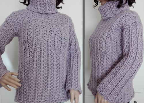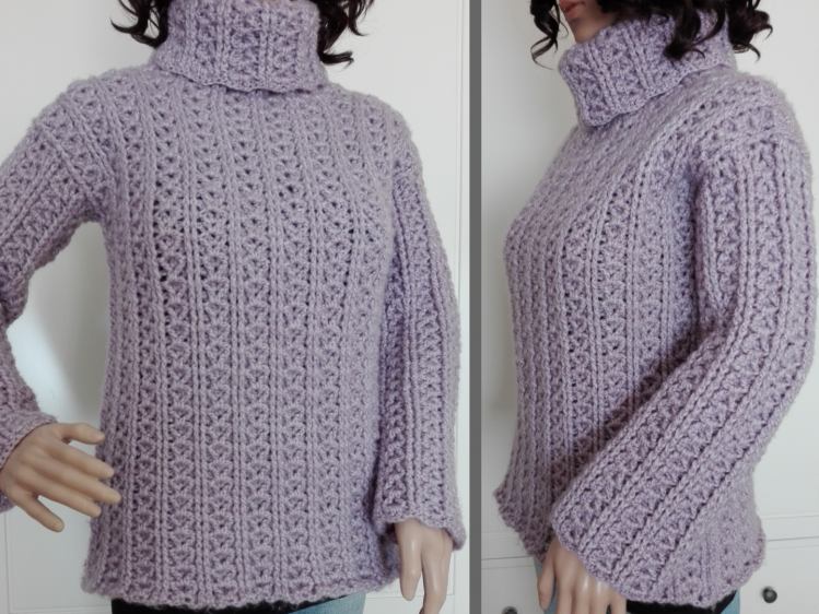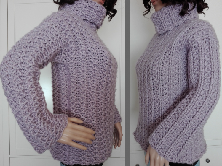 Häkelanleitung Dicker Pulli Gr. S/M & L/XL Wende-Rollkragenpullover