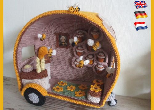 * de caravan wordt (bij gebruik van haaknaald 2,5) ongeveer 25 x 25 cm groot.