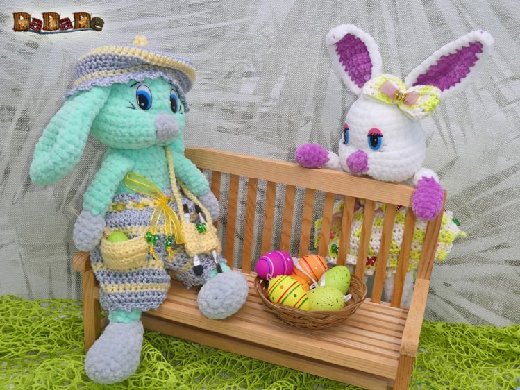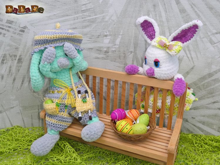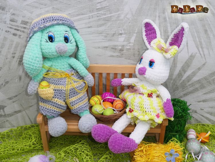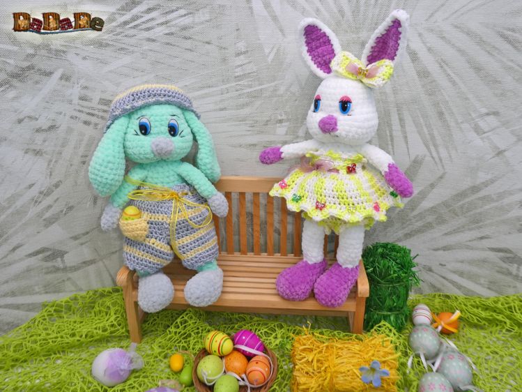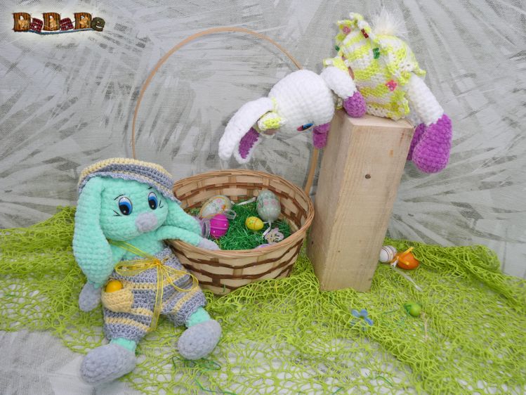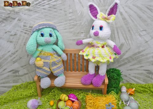 Sie kaufen hier die Häkelanleitung für diese beiden Hasen,