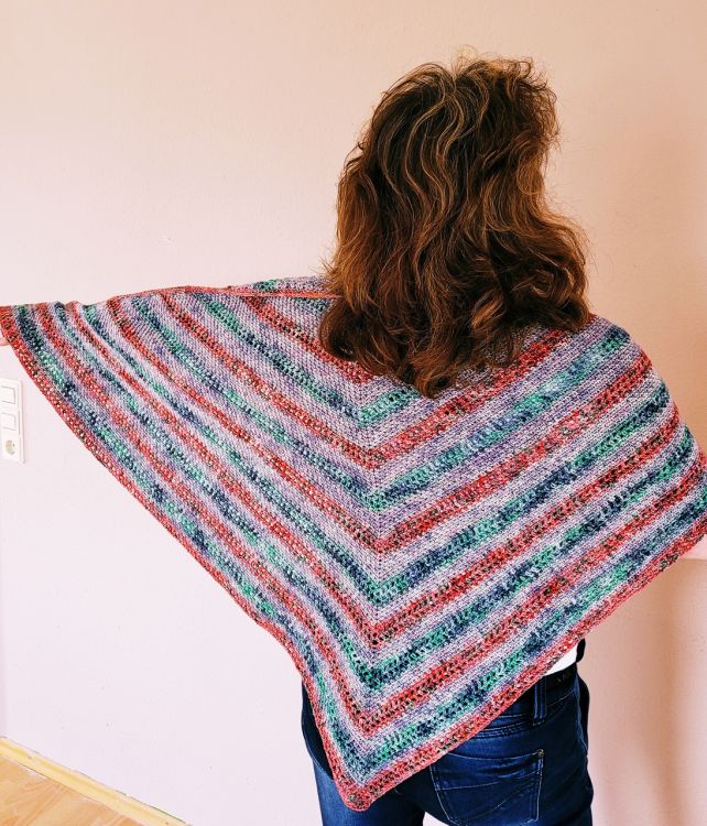 Dieses Tuch, hier in herbstlich- kühlen Tönen, kannst du ganz individuell gestalten, indem du Sockengarn nach deinen Vorlieben verarbeitest. Entweder gekauft oder selbst gefärbt (wie ich es getan habe). Dazu noch eine Häkelnadel, die größer ist als vorgeschrieben und dann kannst du aus dem einfachen Webmuster (moss stitch) ein ganz weiches anschmiegsames Tuch häkeln. Aufgelockert durch die Farbstreifen, in denen auch kleine Lochmuster sitzen. Meine Anleitung bringt dich Schritt für Schritt durch deine Häkelarbeit und es ist trotzdem viel Raum für eigene Abwandlungen.