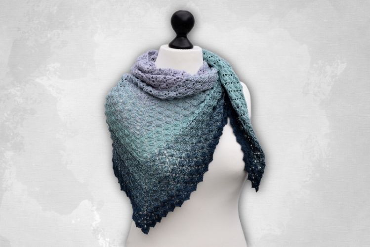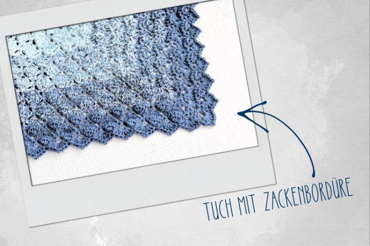 Für das Herstellen eines Häkeltuchs benötigst du zusätzlich Wolle mit einer Lauflänge von mindestens 1000 m. Das Muster kommt am besten mit einem sogenannten Farbverlaufsbobbel zur Geltung.