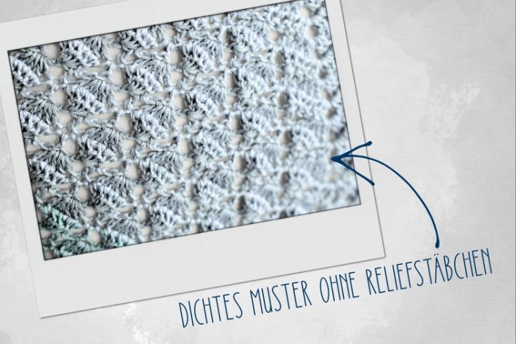Das Muster besteht aus Stäbchen, Luftmaschen und Picots und erzeugt eine gleichmäßige, geometrische Optik. Durch die sich wiederholenden Elemente entsteht ein ruhiger Arbeitsfluss, der sich gut nebenbei umsetzen lässt.