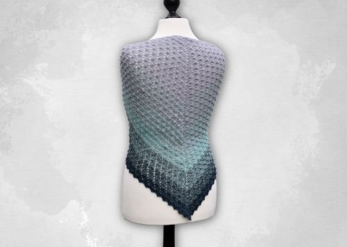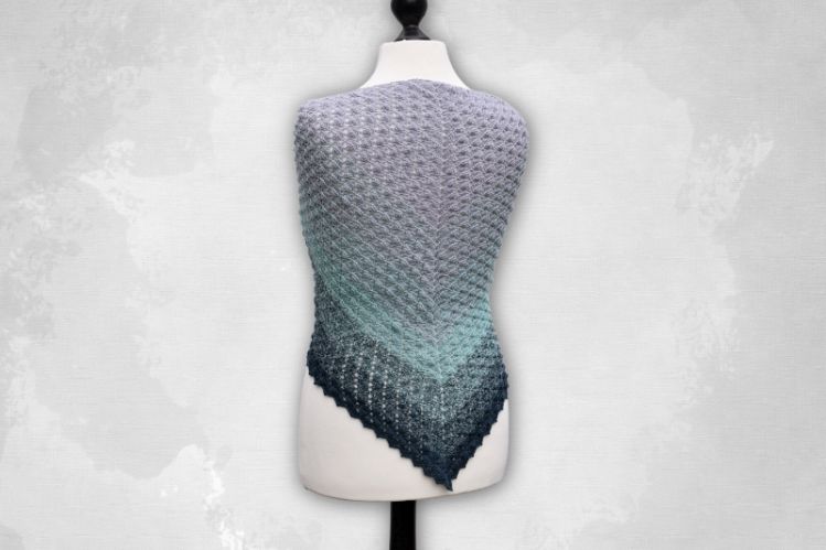 Empfohlen wird ein Bobbel mit etwa 1000 Metern Lauflänge, um einen harmonischen Farbverlauf zu erzielen. Das fertige Tuch ist vielseitig tragbar und für verschiedene Jahreszeiten geeignet.