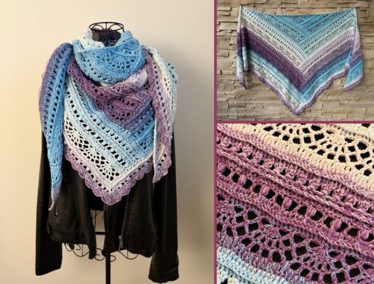 Adrasteia is another shawl from the popular “Shawls with a Twist” series. The short rows keep things interesting, the patterns are easy to follow, and the shawl can be crocheted in any size.