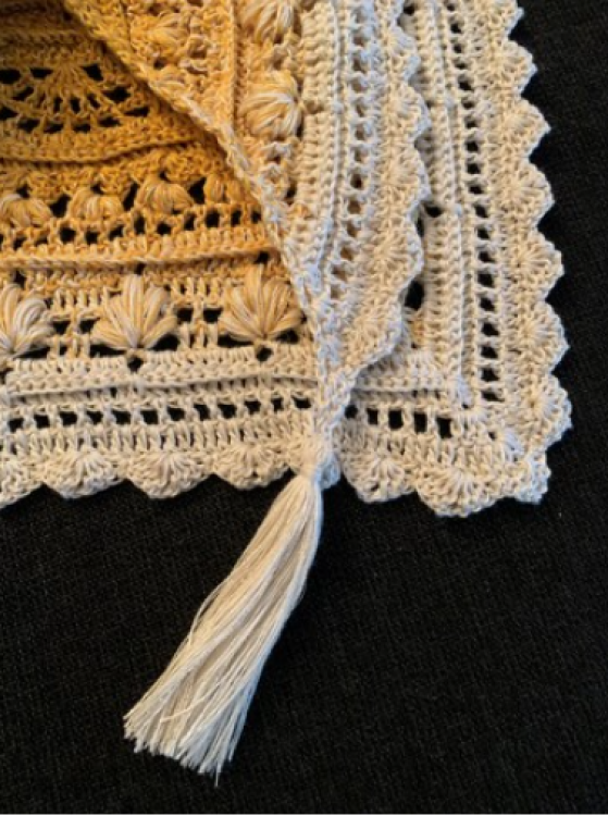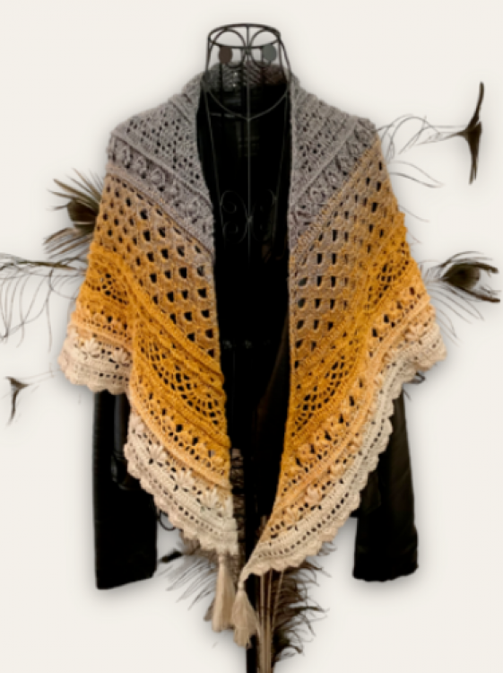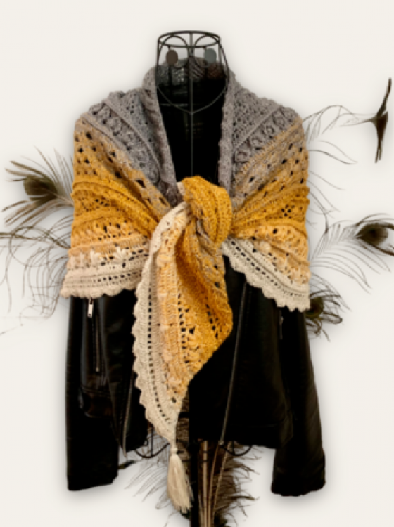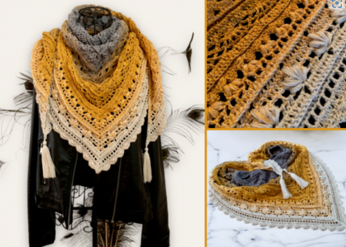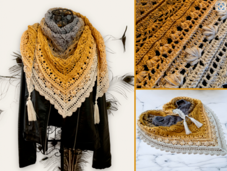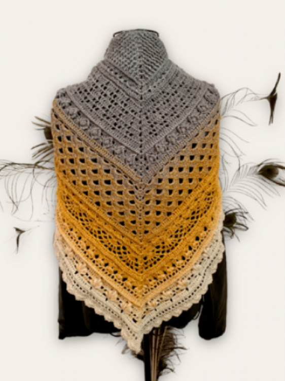 With this pattern you can crochet the beautiful triangular scarf "Balta". It contains my favourite patterns from different scarfs that I have published in 2022 and is therefore somthing where you do not get bored while crocheting.