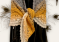 The scarf shown on the images has following dimensions: 110 x 110 x 160 cm.