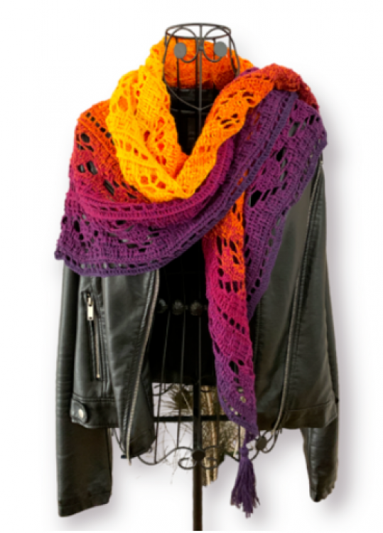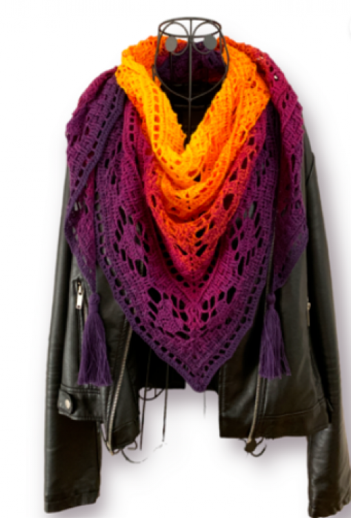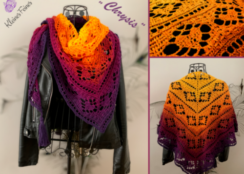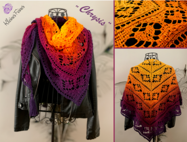 With this pattern you can crochet the beautiful triangular scarf "Chrysis". It can be crocheted in any desired size as the rows repeat.