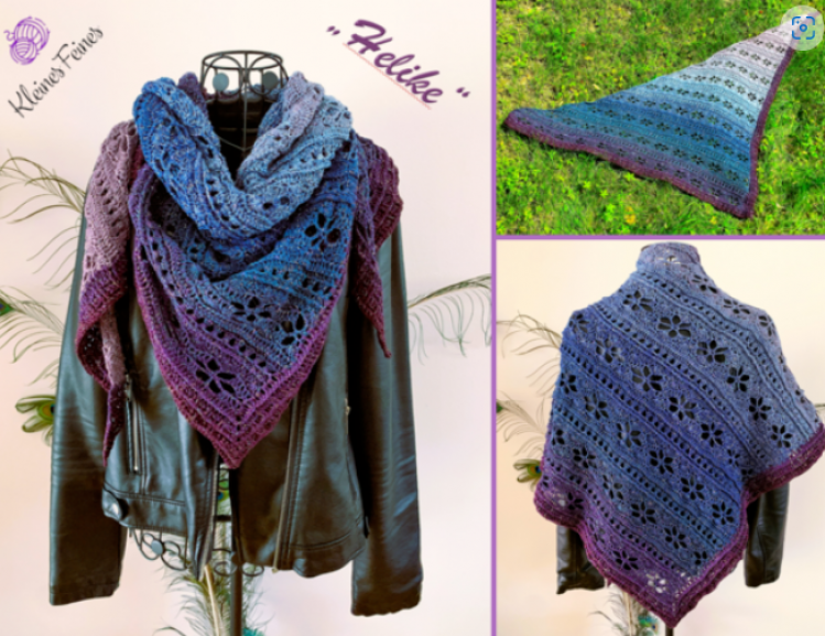 Mit dieser Anleitung kannst du das wunderschöne, asymmetrische Dreieckstuch "Helike" häkeln - eine Abwandlung des symmetrischen Tuchs "Themis".