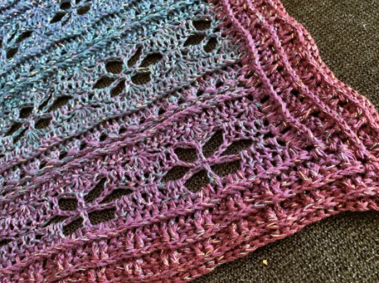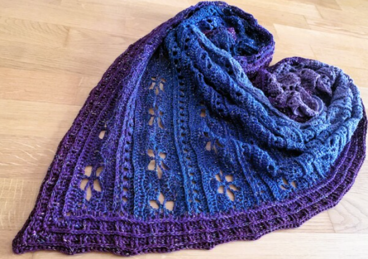 The pattern is aimed at a little advanced crocheters who can cope well with the stitches listed below. The shawl is asymmetrical, increases are made on one side only. The edge can be crocheted as wide as you like, or omitted if you wish.