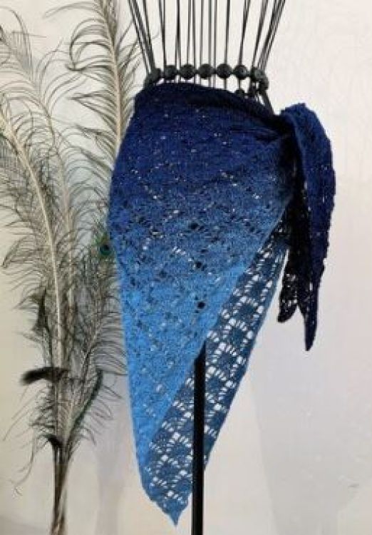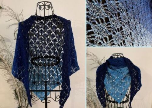 The finished shawl shown on the pictures has a size of 115 x 115 x 160 cm.