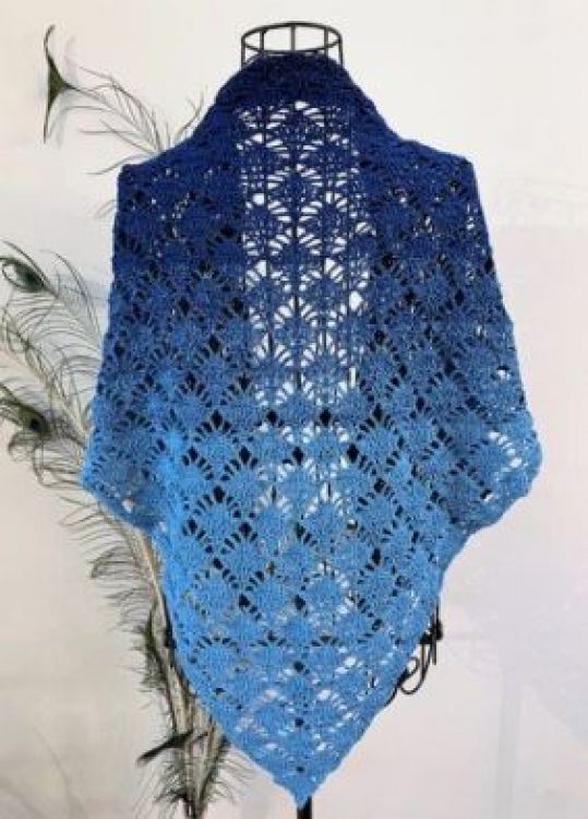 With this pattern you can crochet a triangle shawl that can be loosely wrapped around the neck, shoulders, or on the beach around the hips.