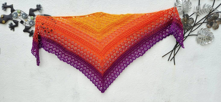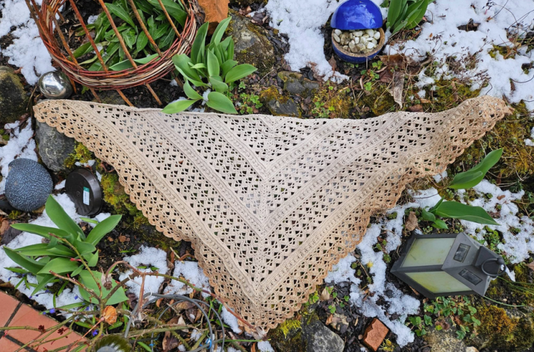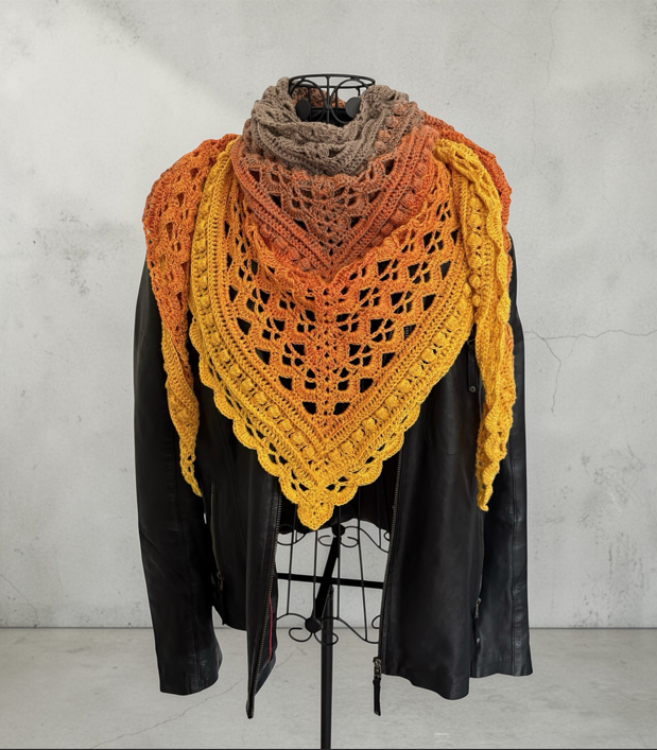 Das Tuch kann in jeder beliebigen Größe gehäkelt werden, da sich die Reihen wiederholen. Bitte beachte, wenn du eine andere Wolle verwendest, eine andere Nadelstärke, oder generelle lockerer/fester häkelst, kann die Größe variieren.