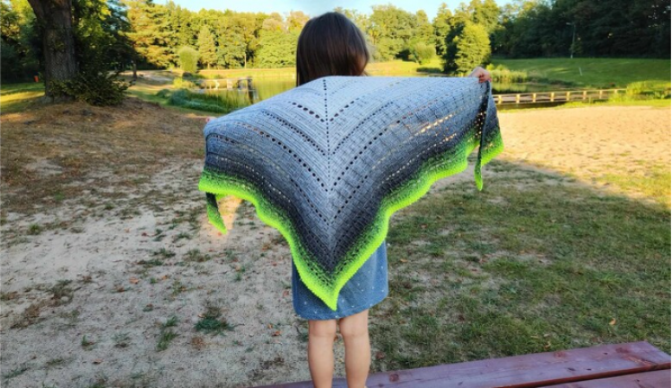 Mit der Anleitung für das Dreieckstuch "Nyx" kannst du dir dein individuelles Tuch ganz nach deinen Wünschen zusammenstellen, inklusive einer besonderen Botschaft: