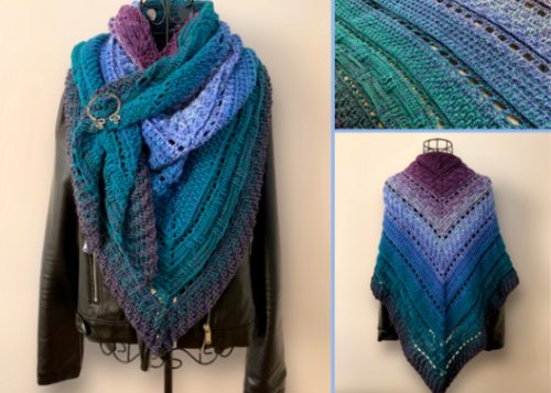 Das Tuch kann in jeder beliebigen Größe gehäkelt werden, die Anleitung enthält eine Tabelle mit Hinweisen, wie groß das Tuch bei Verwendung verschiedener Muster, verschiedener Garne und Häkelnadelstärken wurde.