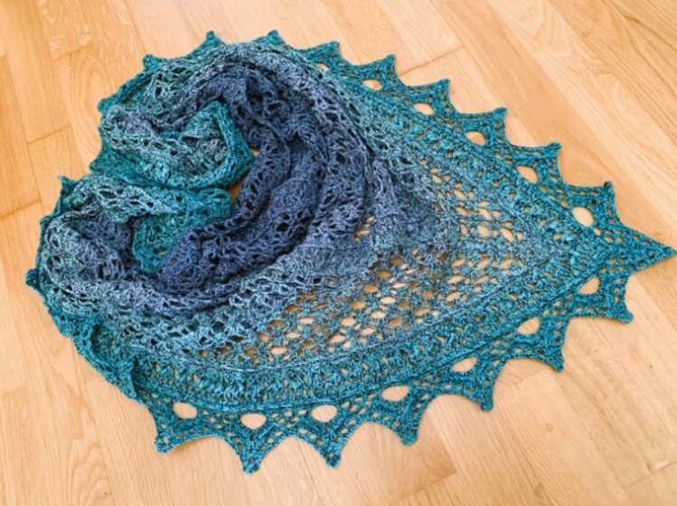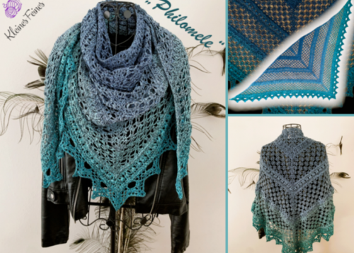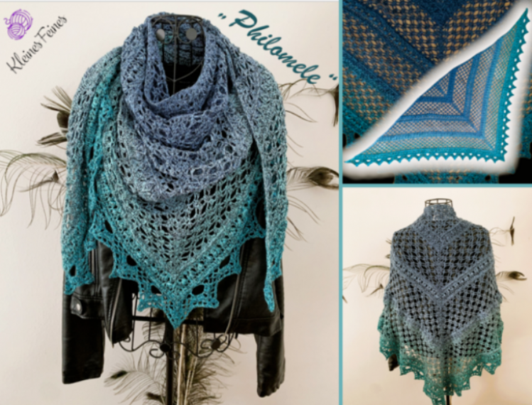 With this pattern you can crochet the beautiful triangular scarf "Philomele", which a loose an airy net pattern and an amazing border as eye catcher.