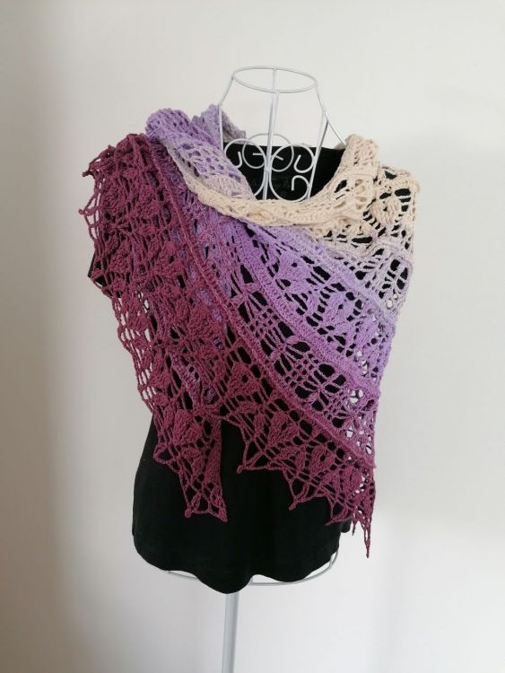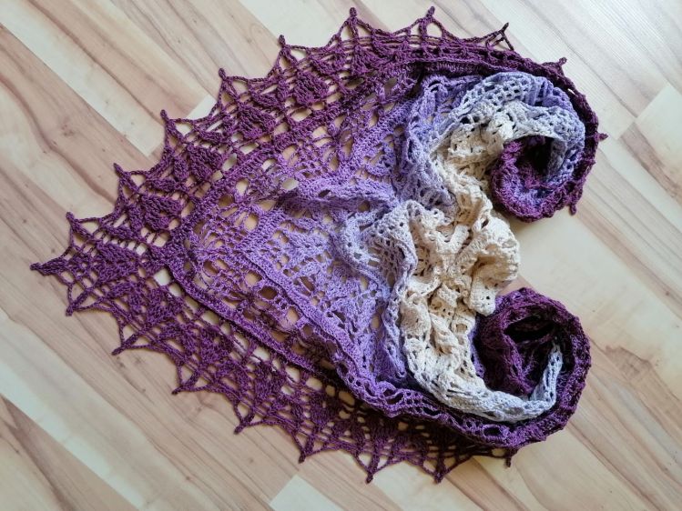 Das Tuch besteht aus zwei identen Teilen, was das Nachhäkeln sehr erleichtert.
