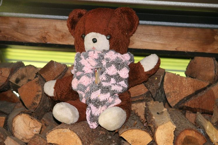 Ich hatte hier zwei bunte Bobbel mit recht wenig Lauflänge, jeder 750m. Die haben mich angeschrien, dass sie endlich verarbeitet werden wollten. Aber mit so wenig Lauflänge fiel es mir schwer, daraus ein Tuch zu machen, da ich zum einen nicht so ewig lange Luftmaschenketten mag, andererseits die Tücher aber gerne größer habe. Also habe ich mir was überlegt, um die Bobbel zufrieden zu stellen, und ein schönes Ergebnis zu haben. Ich habe beide gleichzeitig verarbeitet und herausgekommen ist ein Muster, was mich an eine strahlende Sonne erinnert. Und da der Schal sehr bunt ist, heißt es nun „Buntes Strahlen“ auf Esperanto. Warum Esperanto? Ganz einfach, weil mir da die Übersetzung am besten gefallen hat.
